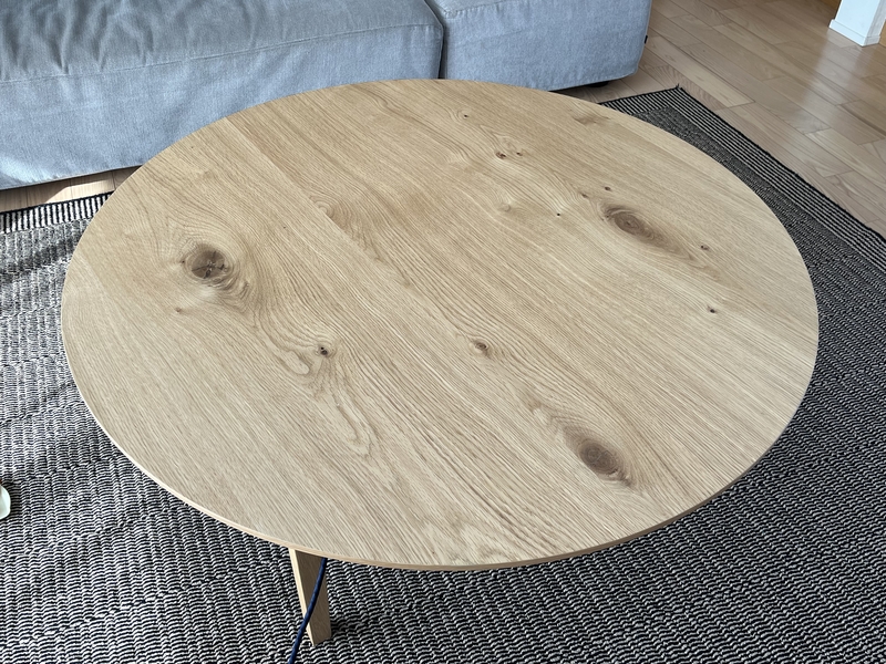 その中で、無垢と見まがうような節あり天板を実現できたのは、美しいローテーブルにさらに近づけたと満足しています。