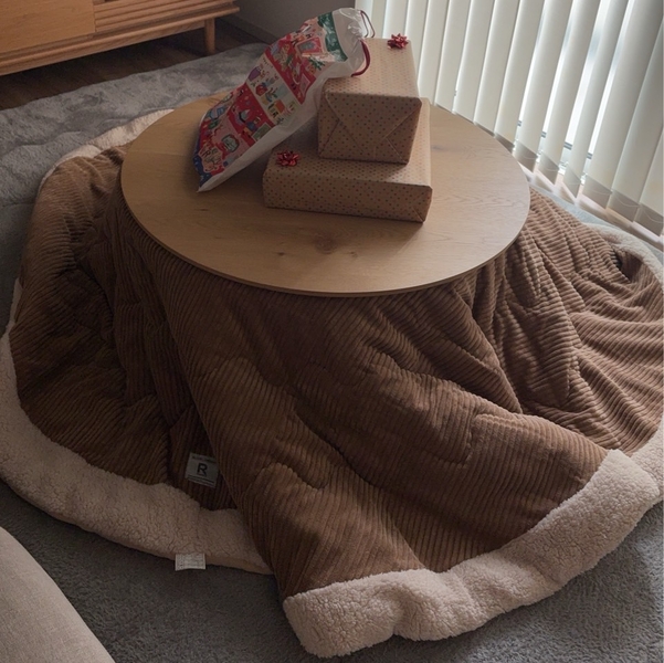 「薄掛けタイプは寒いのではないか?」と心配する方がいるかもしれませんが、布団がテーブルに沿うようにして裾の広がりを抑えてくれるので、身体にぴったりフィット。