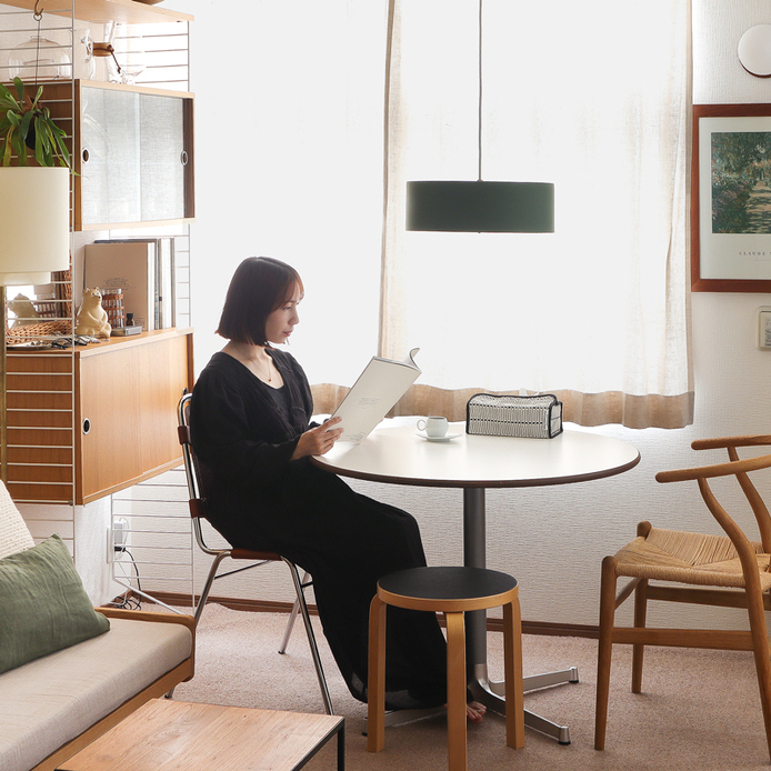 すっきりとしたフォルムは重たさを感じないのがポイント。白い家具の多いお部屋をほどよく引き締めてくれます。