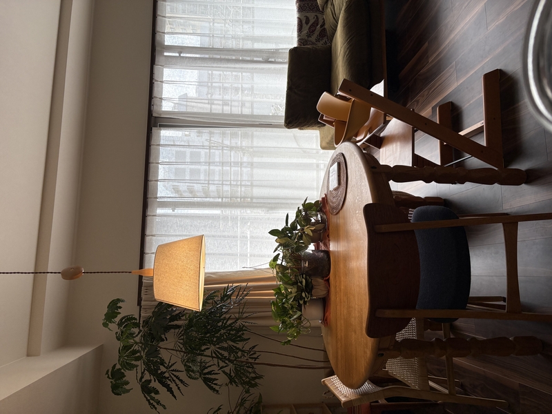 素材の持つ柔らかで素朴な雰囲気と、シェード越しに照らしてくれる灯りの暖かさとが相まって、ダイニングが極上の癒しの空間に変身しました。