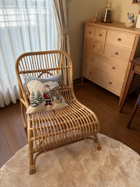 通気性がよく涼やかなラタン家具は、夏だけのものと思われがちですが、保温力のある小物と合わせることで、冬の間も暮らしに馴染んでくれます。