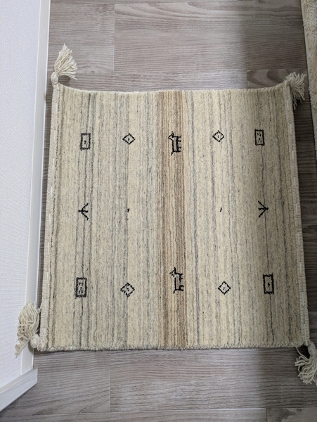 そこで、シェルフ前にAile ギャッベを敷きました。