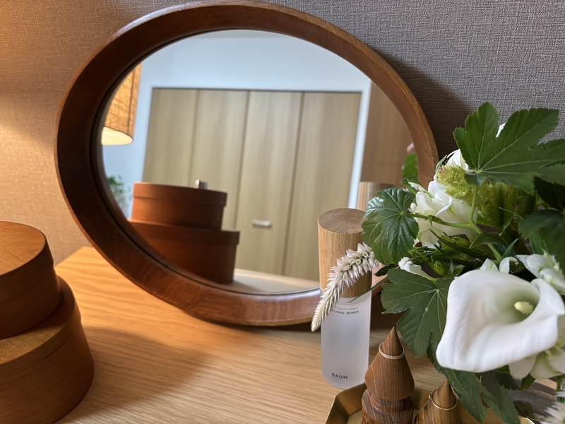 お出かけ前にイヤリングをつけたりリップを塗ったり、身なりを整えるためのミラーが欲しいなと思い購入しました!