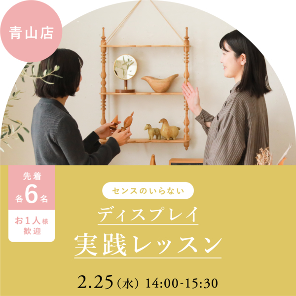 ディスプレイセミナー@青山店|2月25日(水)14時~青山店での1.5時間程度の体験型レッスンです。最大6人のグループ制です。