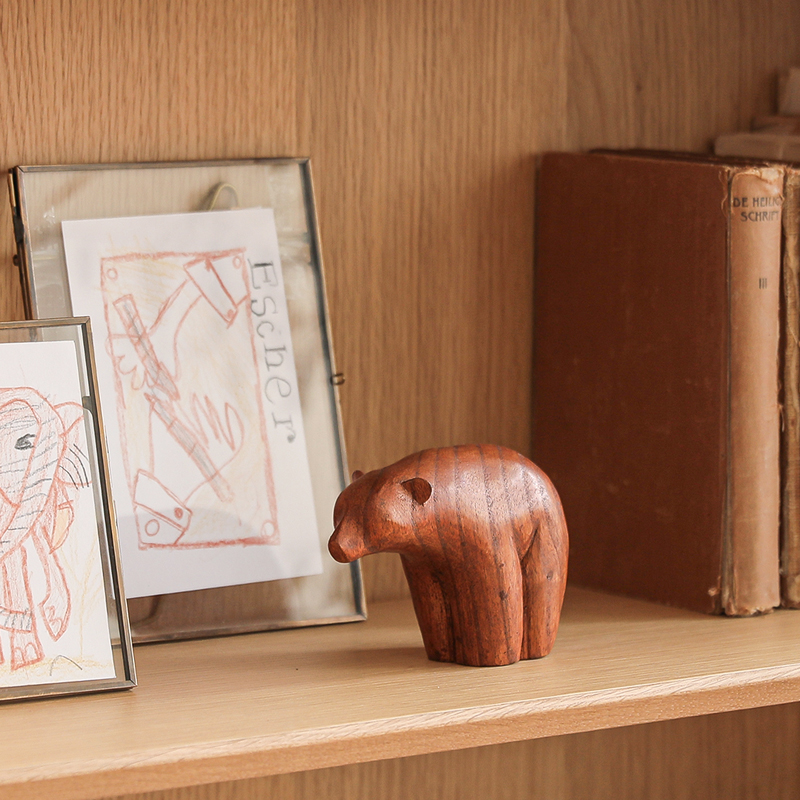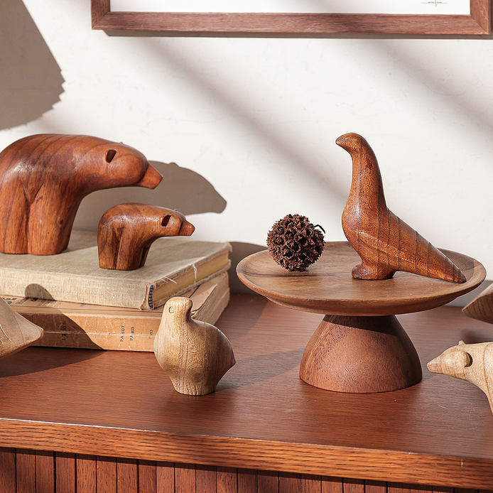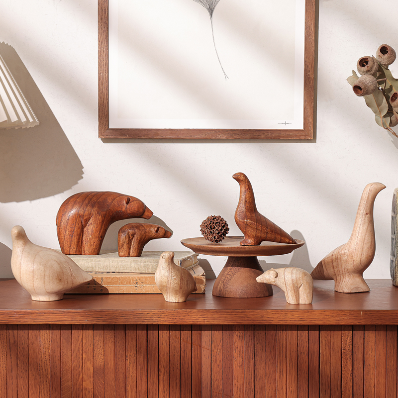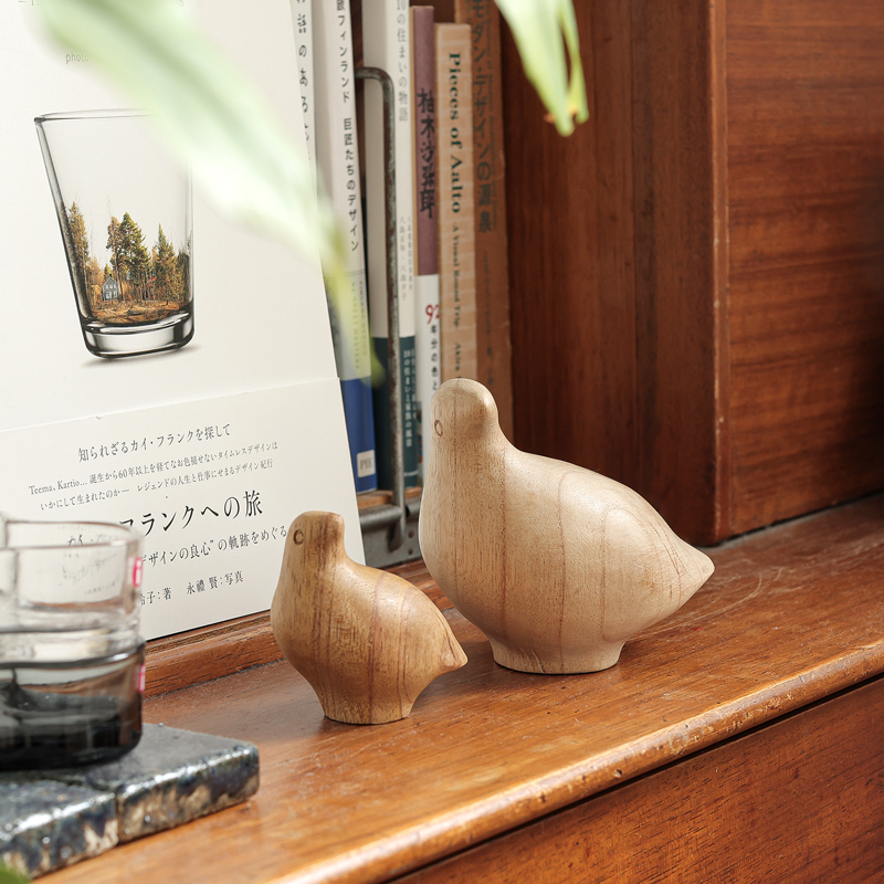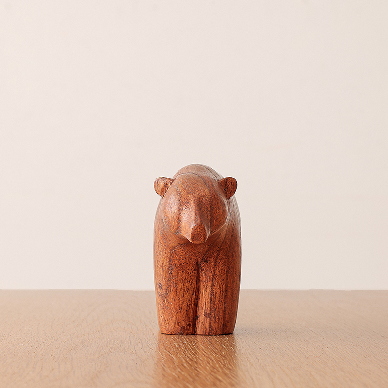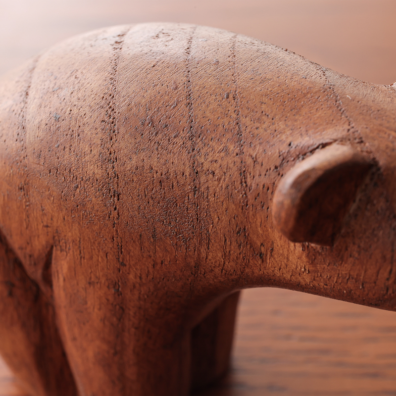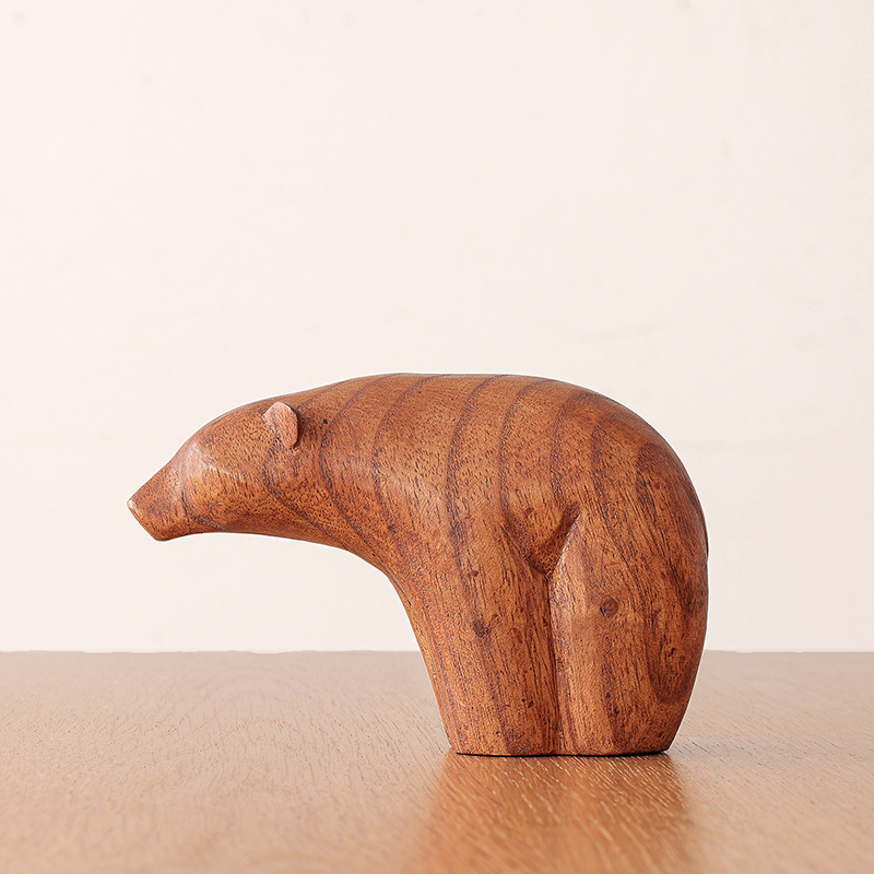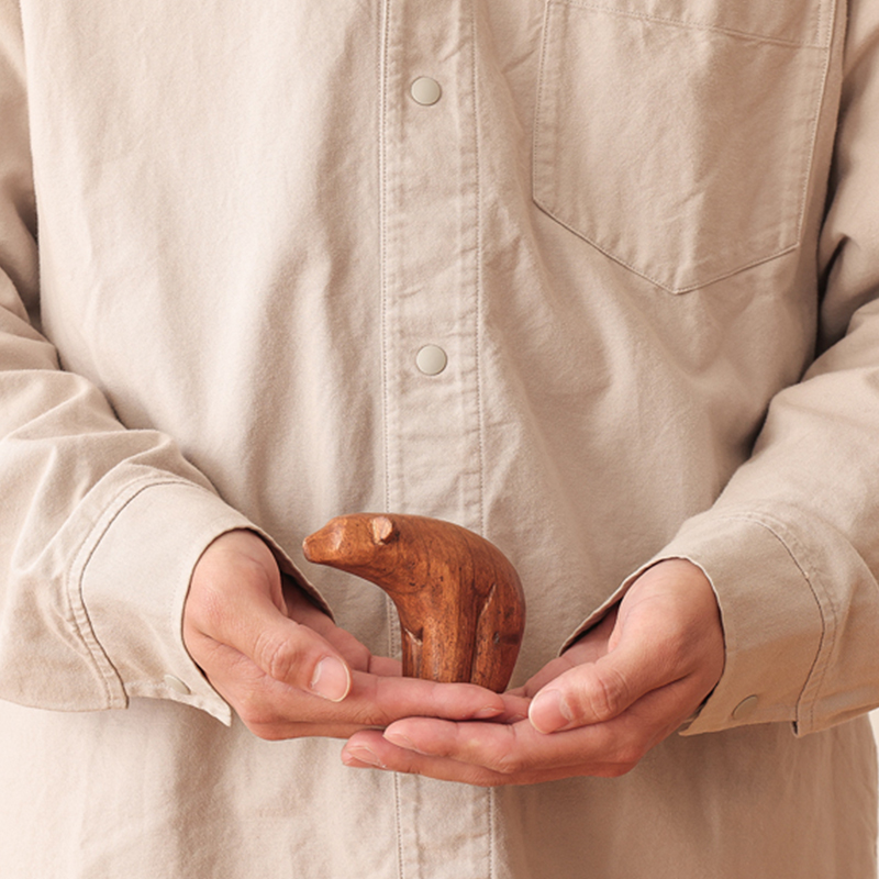穏やかな木目や、硬すぎない素材が魅力の木材で、やわらかなフォルムを引き立てたい動物オブジェに採用しました。