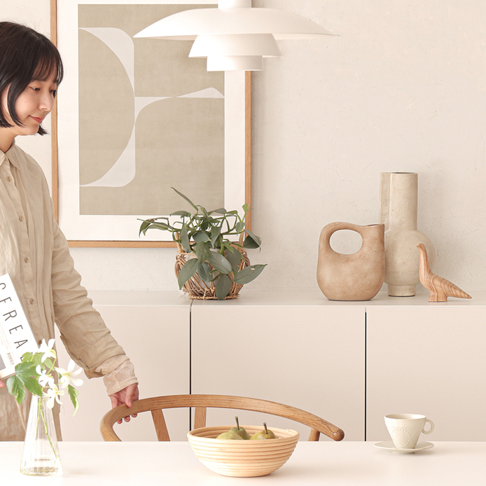 「Tona」のような「円形」の特徴を持つオブジェは、お部屋に置くことで、やわらかな印象をプラスしてくれます。