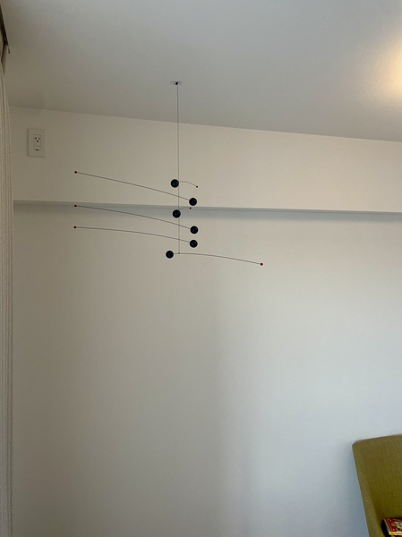 そんなぽっかりとした空間にモビールを飾ることで、立体感が生まれ、お部屋全体がより洗練された印象になりました。