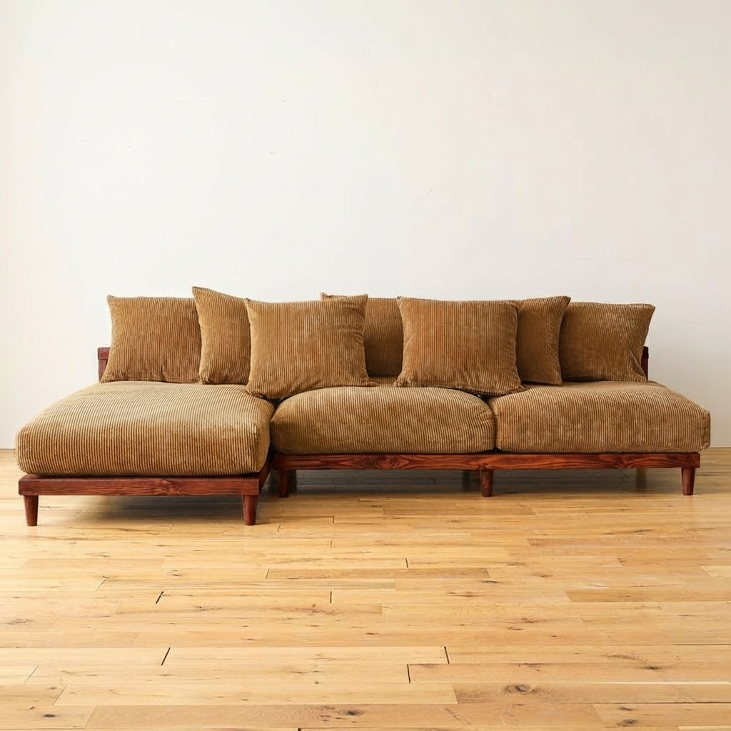 Re:CENO product|culum dining/low sofa専用パーツ 本体フレームカバー【コーデュロイ生地:キャメル-カウチ(左アーム)】
