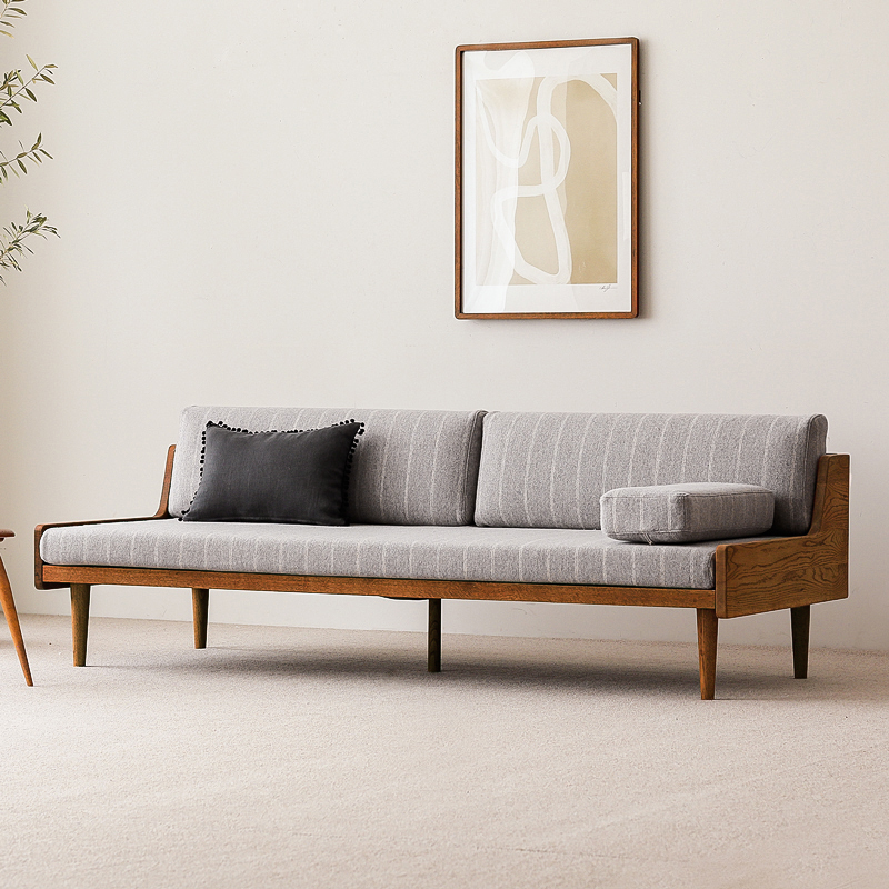 Re:CENO product|3人掛けソファー Lys【ブラウン】【ウール生地:グレーストライプ-ストレート】