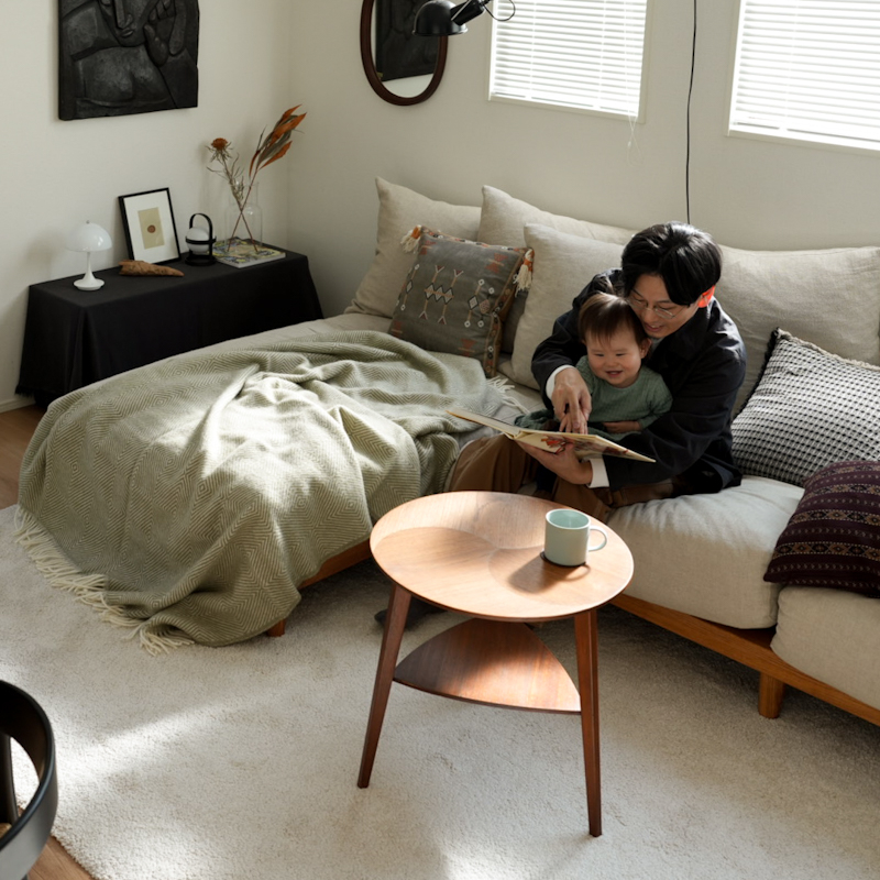 購入から2年経った「folk jr ソファー」。使い続けて感じた変わらない良さと、少しづつ見えてきた変化をご紹介します。