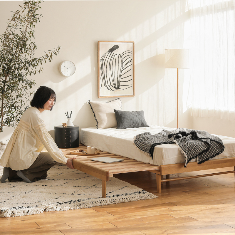 これ1台で「シングルサイズ」から「クイーンサイズ」まで対応。フレームが伸びて長く使える「伸長式ベッド」をリリースします。