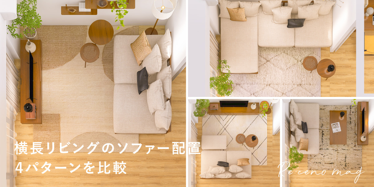 ソファーの置き方ひとつで、見た目の印象も使い心地も変わる縦長リビング。4つのレイアウトパターンを解説します。