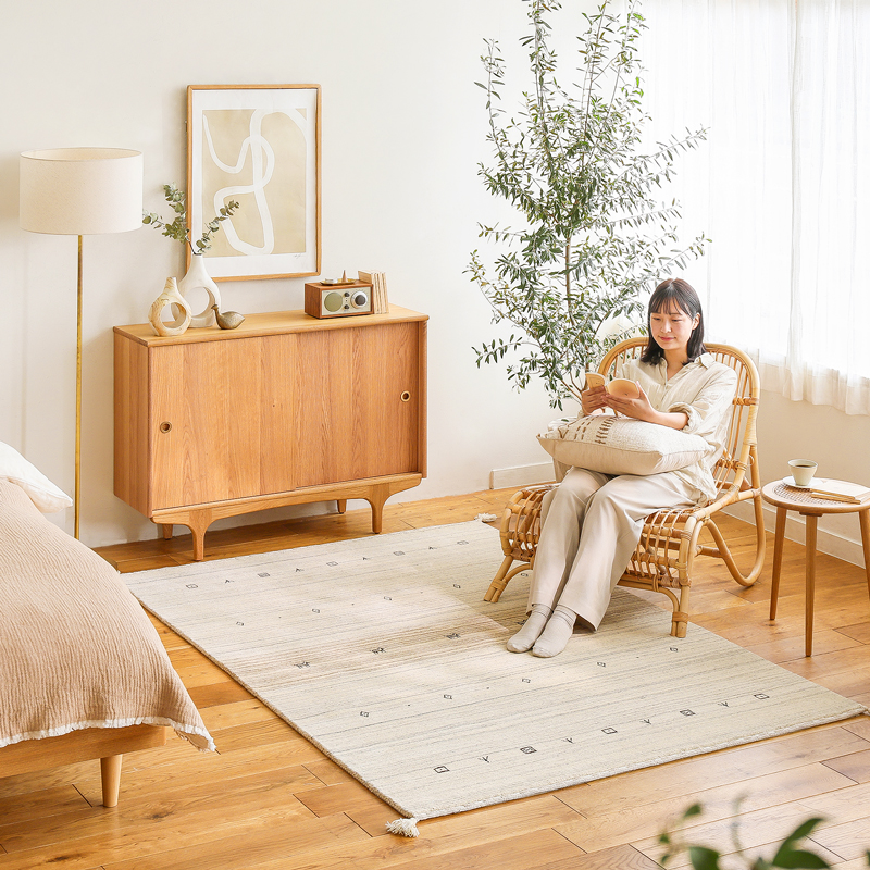 Aile ギャッベが馴染みやすいデザインながら、お部屋に変化をつけてくれる秘密は、3つ。