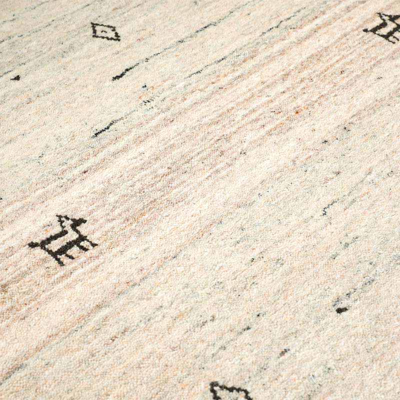 そんなギャッベの個性的なデザインはそのままに、ナチュラルな色合いに仕上げられた「Aile ギャッベ」。