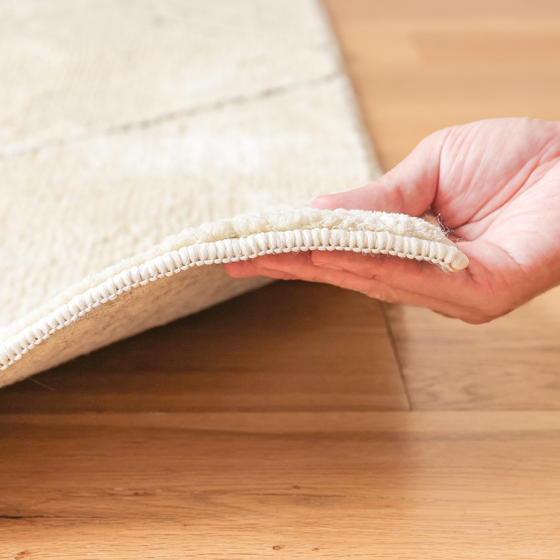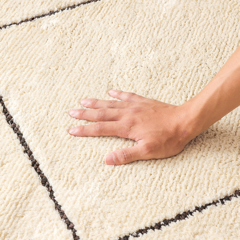 そこに、表面に小さな輪っかの並んだ「ループパイル」を組み合わせることで、弾力感がプラスされ、耐久性の高いラグマットが出来上がるのです。