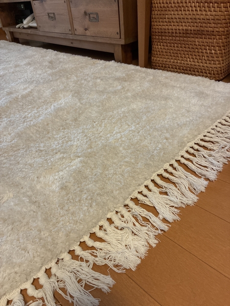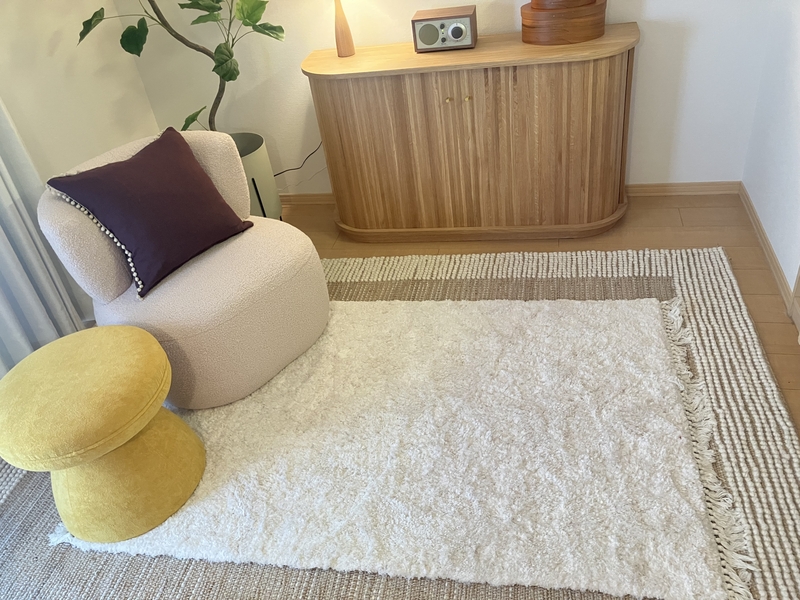 毛足の短いラグはすっきり整然としていますが、素材の質感という点では、どこか物足りなさも感じます。