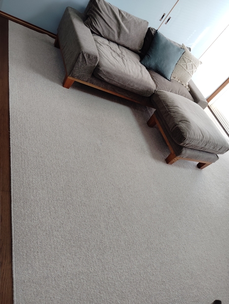 リビングダイニングのリビングスペースのために購入しました。グレーの352cm×352cmです。