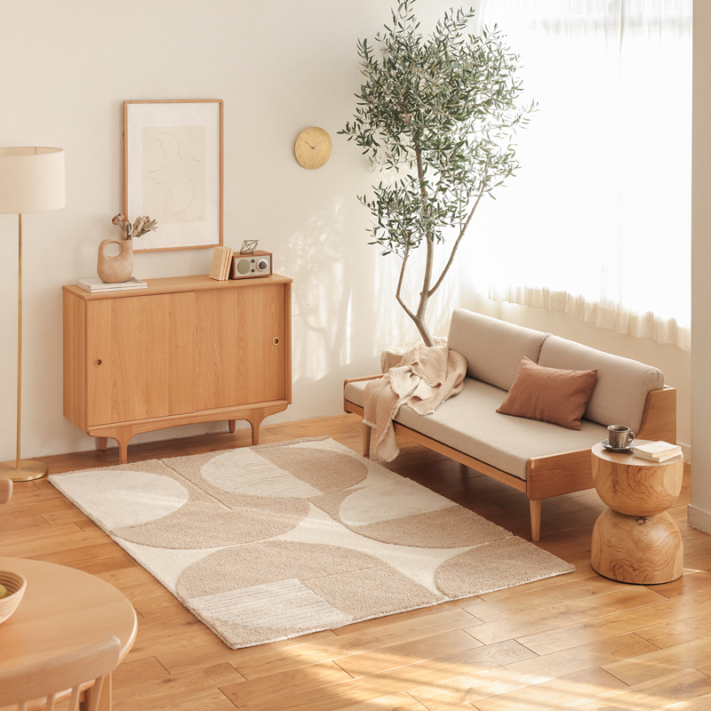 そこでおすすめなのが、円形や四角形を組み合わせた「幾何学模様」が美しいウールラグマット「Orma(オルマ)」です。