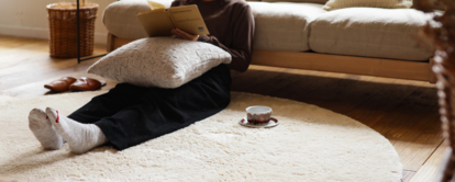 お子さまやペットと暮らしている方や、マンションなどの集合住宅にお住まいの方に、ストレスフリーな暮らしをもたらすラグマットです。