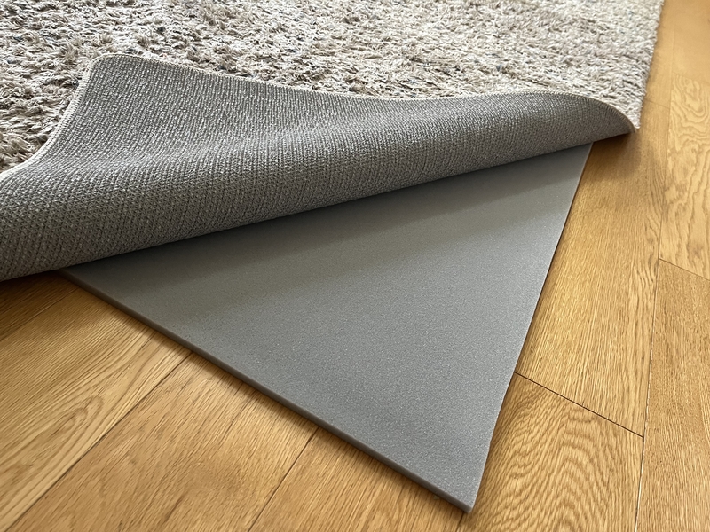 こちらはラグの下にさっと敷くだけで、薄手のラグを滑りづらく、めくれづらくしてくれるアイテム。さらにはクッション性も備わっているので、底付き感なく、ふっくら柔らかな踏み心地にすることができるという優れものなんです。