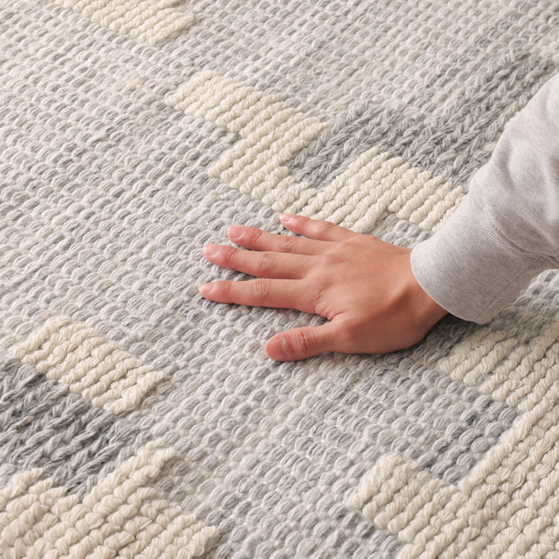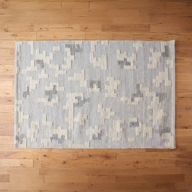 パズル柄×グレーカラーの「手織りラグ」