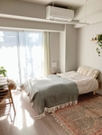 オートミールのカラーとも相まって寝室が一気に可愛くなりました!