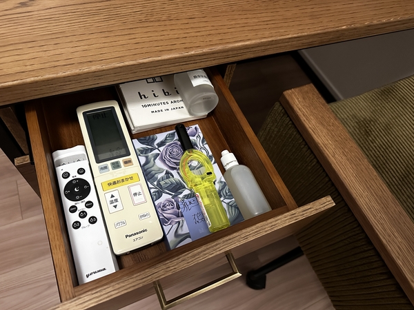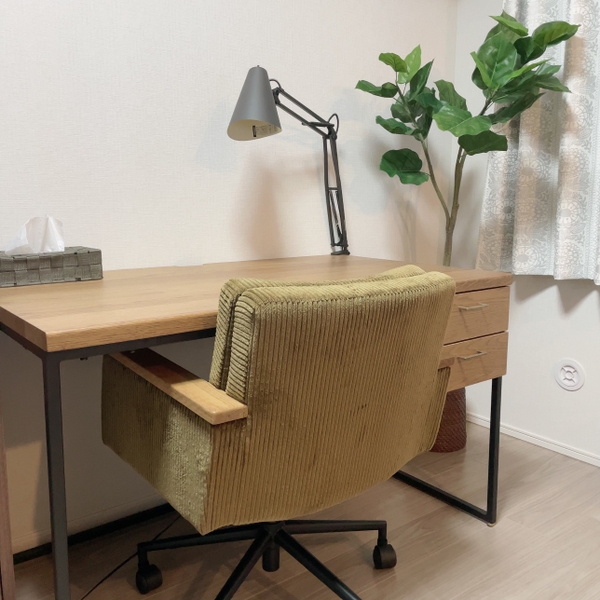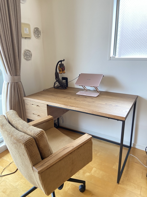 このデスクがある部屋は木の香りがして気持ちも良い。お家でのデスク作業が多い方は是非購入をおすすめします。