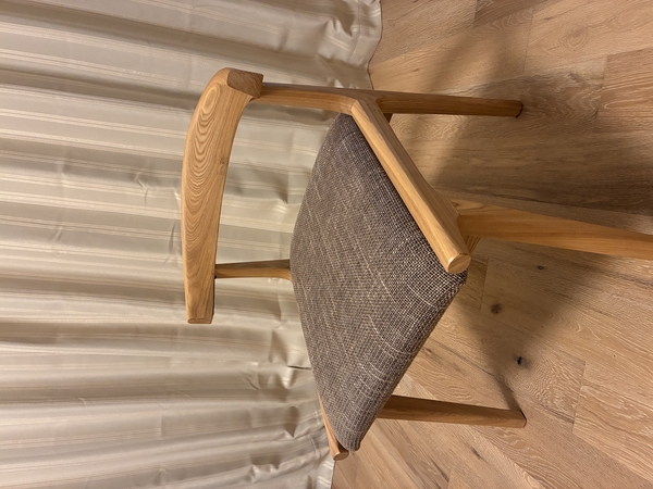 元々所有していたオーク無垢材のダイニングテーブルに合わせるつもりで、ライトグレーを購入しました。
