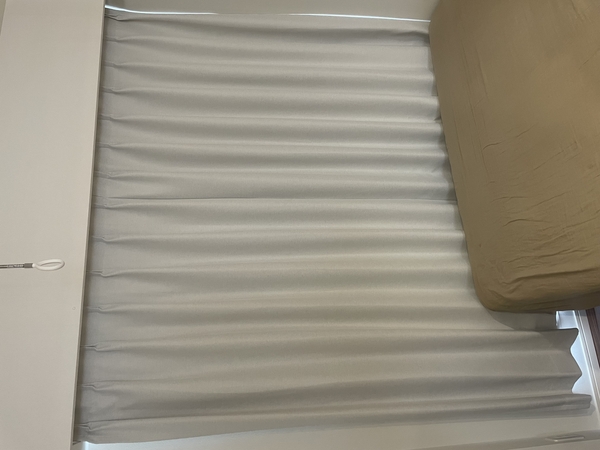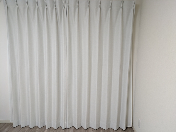 カーテンは失敗したくなかったので、実際に店舗で見て購入しました。スタッフの方にサイズ等のアドバイスをいただけたので良かったです。後日受け取ったカーテンは梱包も丁寧で、生地もしっかりしていて安心しました。寝室のクロスがグレージュなのでアイボリーとベージュで迷いましたが、アイボリーでぴったりでした。