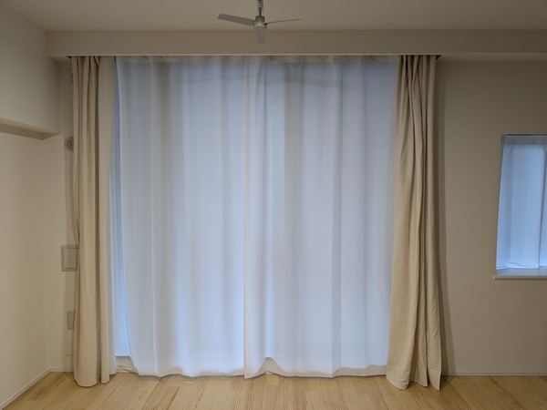 夜間は、カーテン1枚に抵抗感がありドレープカーテンを使ってます。
