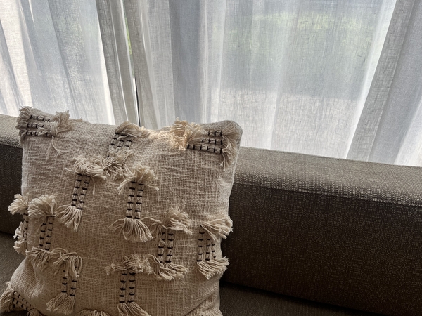 自然光を遮りすぎることなく、でも眩しくないこちらのレースカーテンをリピートで購入しました。リネン特有の優しい肌触りも気に入っています。