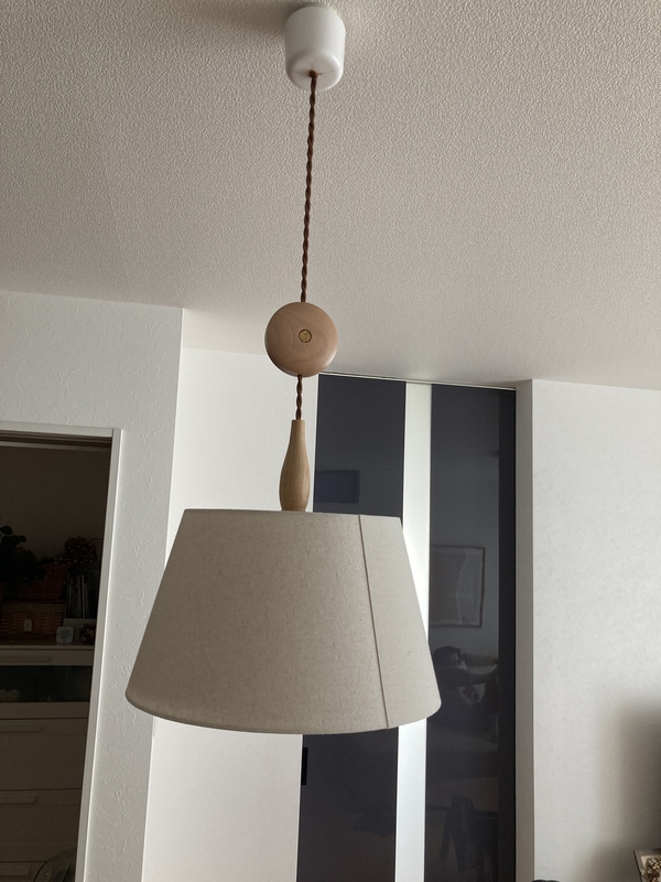 ブラウンのペンダント部分の色味と木目、シェードのナチュラルな素材が気に入っています。
