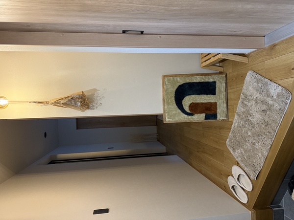 廊下が明るい色のフローリングなのでグレーにするかベージュにするか迷って、グレーにしました。