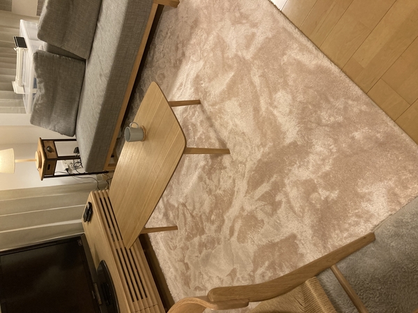 ふわふわで気持ちが良く、適度に厚みがあるため床の硬さも気になりにくくよかったです。ミルクティーカラーにしましたが、ピンク味の入った柔らかいベージュでとてもいい色で気に入りました!ピンクが強すぎないので、浮くことなくフローリングに馴染んでくれます。