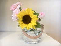 ショップの画像と同じ、黄色のオキシジューム?というお花を買って挿してみました。