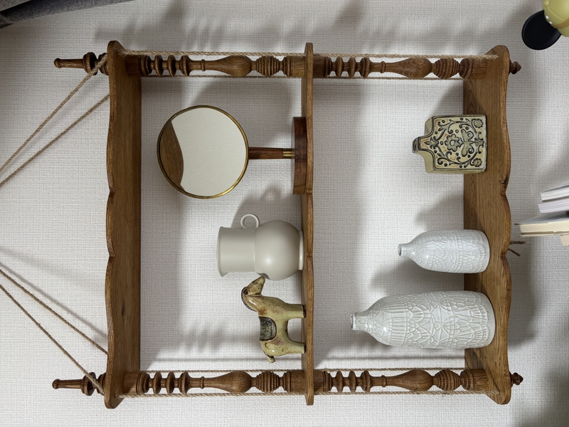 さて、そんなアノニマスデザインから復刻を行った「ナポレオンシェルフ」。その良さは、何よりもお部屋のアクセントになり得る趣き、複雑性、ぬくもりといった、お部屋への彩りを与えてくれることです。