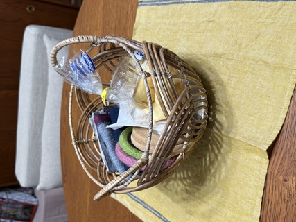 ダイニングテーブル周りのごちゃつきやすいものを入れています。
