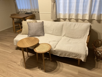 リネン生地は最初少し粗い肌触りでしたが、使ってくうちに馴染んできて座り心地最高です。