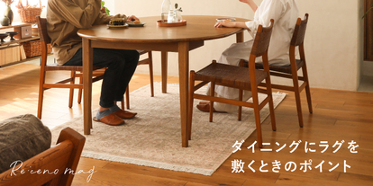 また、リビングとダイニングが隣り合っているお部屋では、ラグマットを敷いて「ゾーニング」することで、視覚的にもリビングのリラックス感が高まるように感じます。