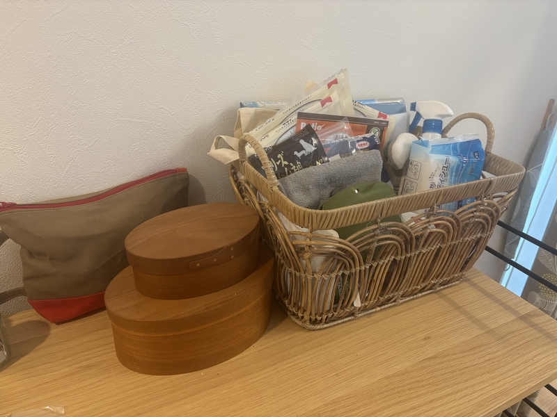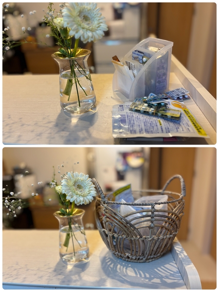 適当に置いていたものが、カゴに入れるだけでおしゃれに整いました。