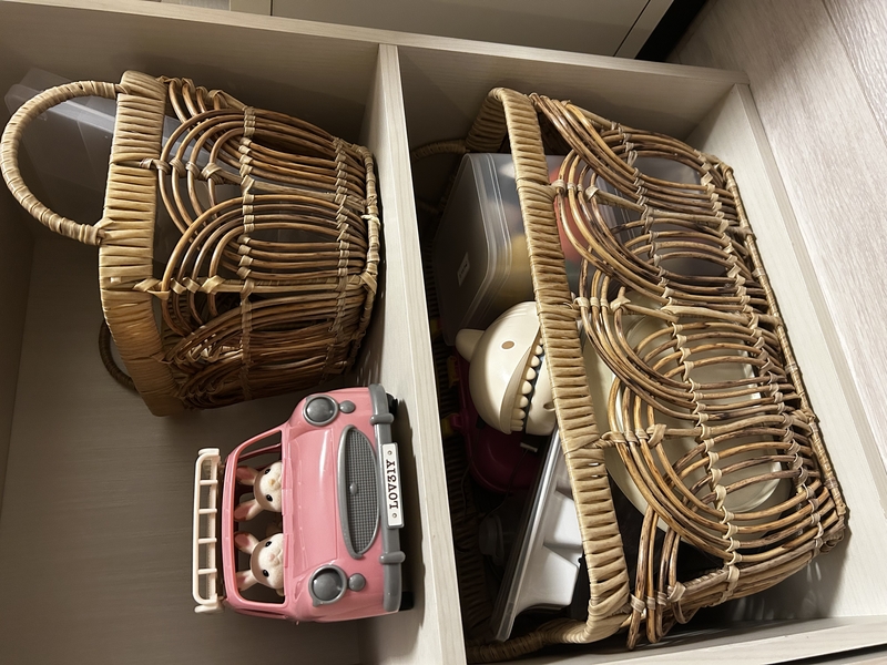 その収納力は、おもちゃ入れにぴったり。お絵描きセットやおもちゃなど、かさばるものが多いですよね。子どもの片づけであれば、大人のように入れる向きを考えながら、上手に収納とはいきません。