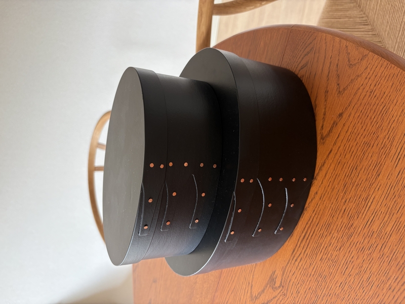 シェーカーボックスは、曲げ木の滑らかな曲線の美しさと、木製ならではの温かみを感じるデザイン。側面の木材を留めるツバメの尾のような仕立てと、真鍮のリベットからは、手作業の跡のような素朴な雰囲気を感じます。