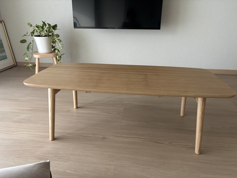 木の温かみを感じられるセンターテーブルを取り入れることで、空間に明るさや爽やかさが加わり、お部屋に統一感も出ました。