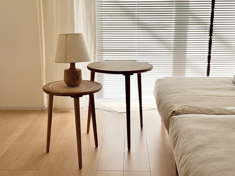小さくてどこにでもフィットするテーブルですから、一人暮らしのワンルームならば、ソファー前でひとつ使って、もうひとつはベッドの横に置いてもいいかもですね。