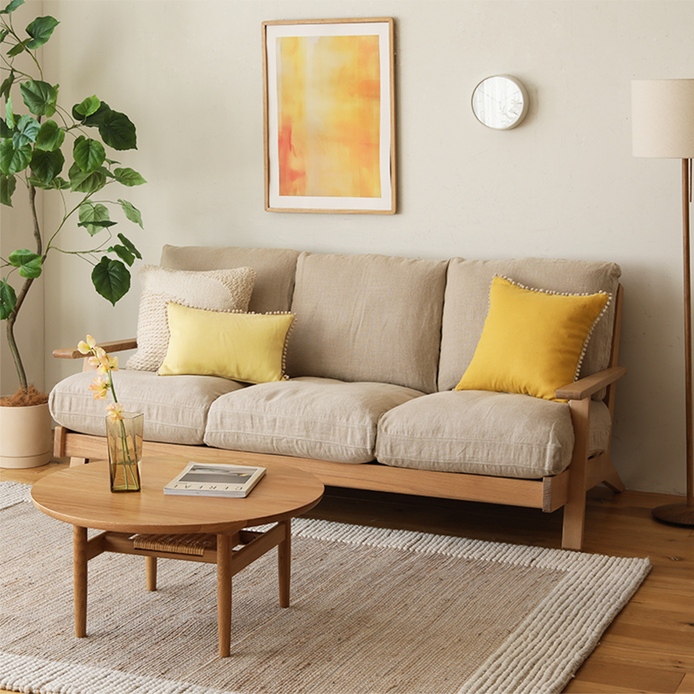 家族や友人がリビングに集まって3人で座るとき、2列タイプだと真ん中の人はクッションの隙間が気になったりすることも。その点、それぞれに独立したクッションがあることで、より快適な時間をお過ごしいただけます。