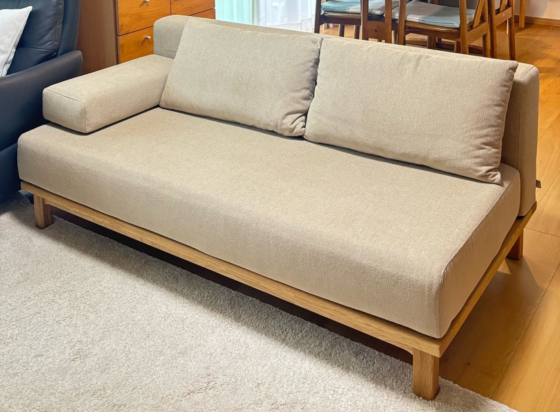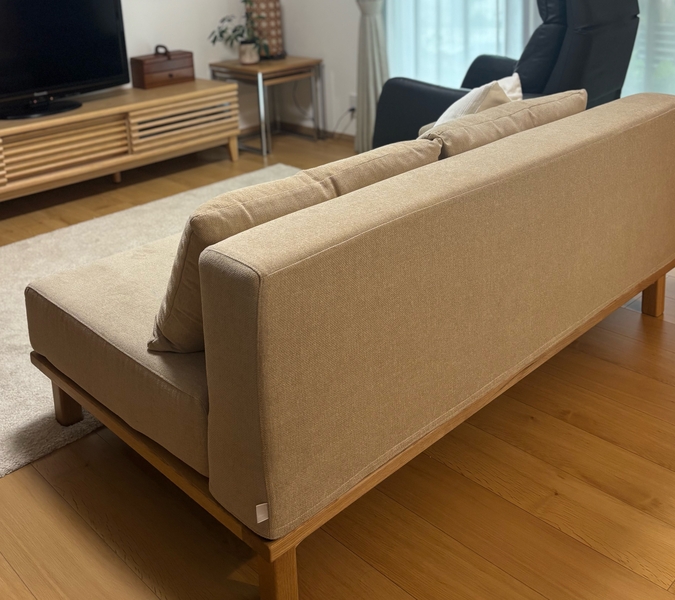 しっかりと張りのある生地と硬めのウレタンを使った座面は、長時間座っていても疲れにくく、心地よさと耐久性を両立しています。