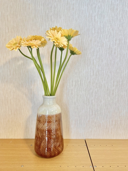 お花を合わせるときは、ほんの添える感覚で。ミモザのような黄色いお花とRippleの黄みがかったブラウンは相性がよく、どちらも美しく引き立ててくれます。