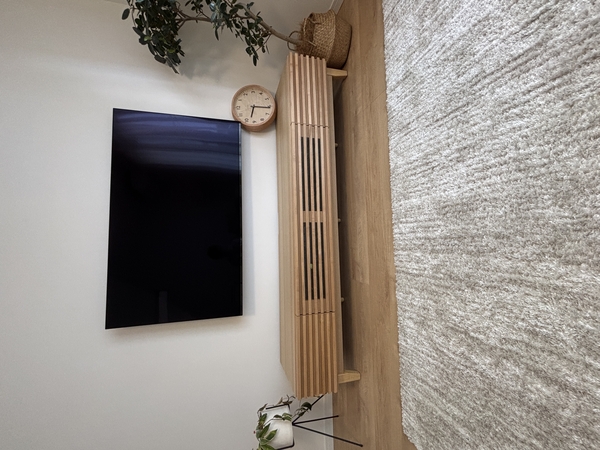 65インチTVには200センチ幅がバランスよく無駄なく、綺麗に配置できました。