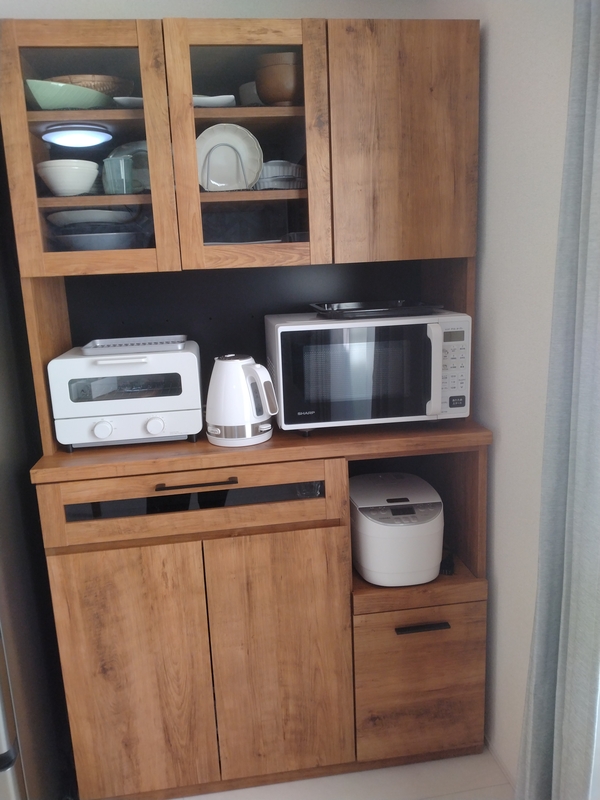心配事は横幅のある家具を置くことによる圧迫感だったのですが、リセノさんのボードは奥行きが最新のテレビに合わせて作られていたので、一か八かで購入しました。