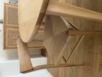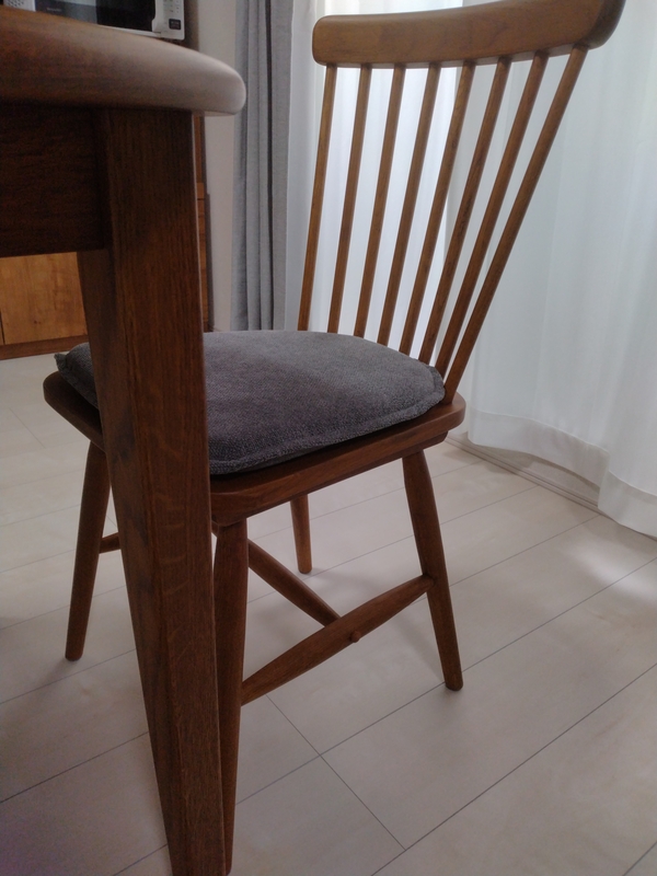 椅子はどうしても長時間座り、腰が悪いので飛騨家具さんのSEOTO-EX(ホワイトオーク材、WOカラー、セイブルIV)を合わせましたが、高さも雰囲気も違和感なくダイニングテーブルに馴染んでくれましたし、リセノさんのダイニングテーブルにぴったり納まります。